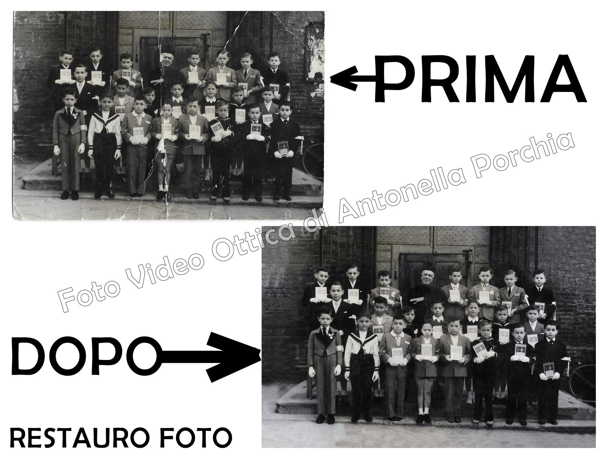 Con il passare del tempo le fotografie possono rovinarsi, scolorirsi o danneggiarsi. Grazie al nostro servizio di restauro fotografico interveniamo su immagini deteriorate per recuperarle e migliorarne l’aspetto, restituendo nitidezza, equilibrio nei colori e qualità visiva. Ogni intervento viene effettuato con attenzione, rispettando l’immagine originale.